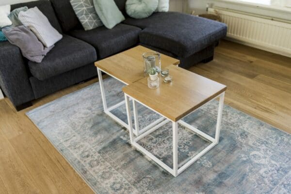 - Voor de met 3-componenten geoliede én gelakte tafelbladen is in het dagelijkse onderhoud afnemen met een droge doek voldoende. Om vlekken/kringen te verwijderen is een vochtige lauwe doek voldoende. Zie de pagina onderhoud voor meer informatie.