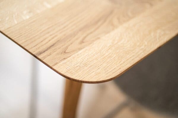 Gemaakt van massief eikenhout van 4 cm dik, biedt de Belli niet alleen duurzaamheid, maar ook een natuurlijke uitstraling. Het blad is behandeld met een Natural Oak olie en afgewerkt met een matte lak, wat zorgt voor bescherming tegen kringen en vlekken.