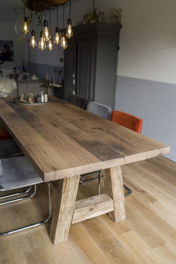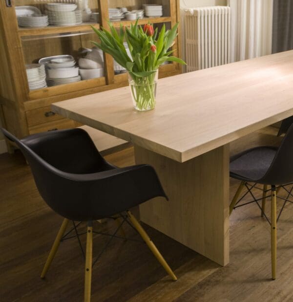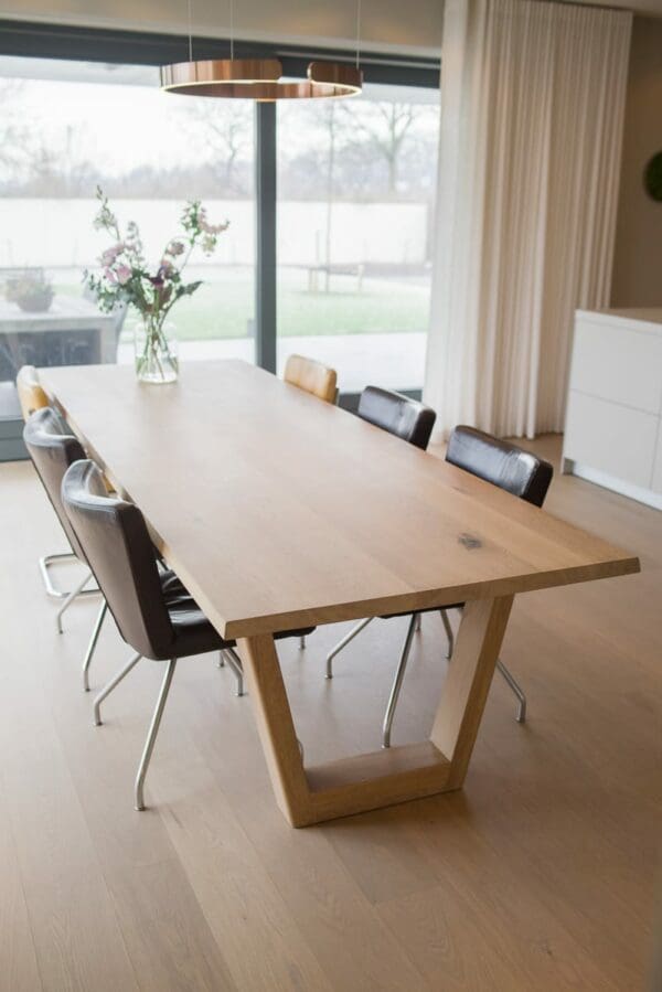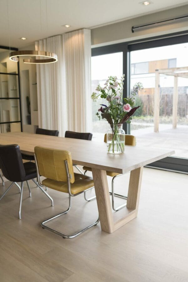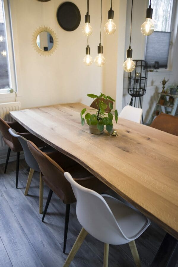 Net als al onze andere eettafels kan ook dit model uitgevoerd worden met een andere houtsoort, randafwerking, profielmaat, kleur en blad(afwerking). Tijdloos, maar toch nét even anders dan anders. Prima toch?