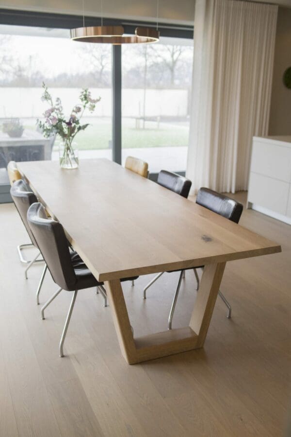 Net als al onze andere eettafels kan ook dit model onderstel uitgevoerd worden met een andere houtsoort, randafwerking, profielmaat, kleur en blad(afwerking). Tijdloos, maar toch nét even anders dan anders.