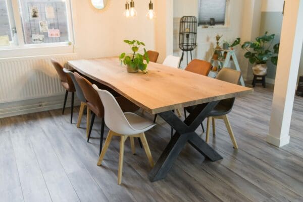 Onze favoriete ingrediënten voor een eettafel zijn stiekem hout en staal, al beseffen we ons maar al te goed dat iedereen een ander idee heeft over de perfecte tafel. Er zijn veel dingen waar je op kunt letten tijdens het samenstellen en op maat laten maken van een eettafel. Bij Tafelsmaak helpen we je graag verder om de perfecte tafel te vinden die past bij jouw woonsituatie en persoonlijke smaak.