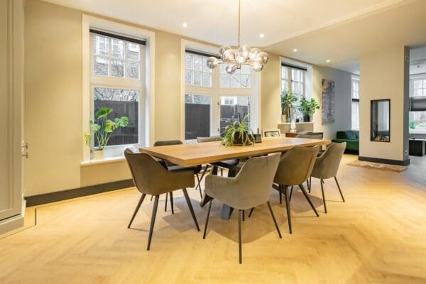 Je hebt waarschijnlijk al een beeld over waar de tafel moet komen te staan. Mocht je daarover twijfelen, laat je dan informeren of adviseren door ons. Onze handige 2D- en 3D-visualisaties vergemakkelijken dit proces, omdat je uitstekend kunt inschatten of de positie, plek en met name de grootte goed is. Wat de positie en ruimte van de tafel betreft is het prettig om ongeveer een meter ruimte te hebben om de tafel heen. Houd hiermee rekening met voldoende doorloopruimte en stoelen die makkelijk en ver genoeg naar achteren geschoven kunnen worden. Twijfel je over de grootte? Dan is een uitschuifbare tafel of het plaatsen van een bankje in plaats van stoelen een optie.