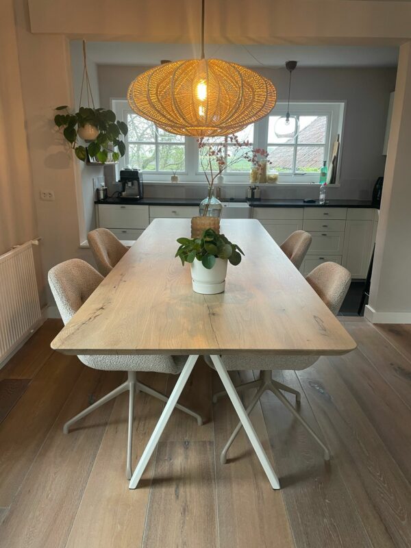 Net als al onze andere eettafels kan ook dit model uitgevoerd worden met een andere houtsoort, randafwerking, profielmaat, kleur en blad(afwerking). Tijdloos, maar toch nét even anders dan anders. Prima toch?