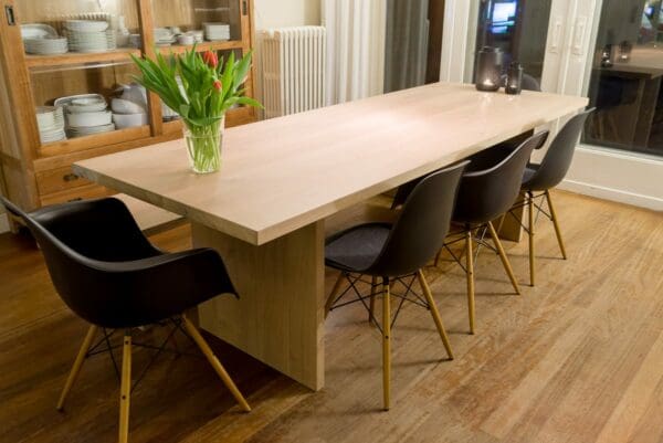 - Voor de met 3-componenten geoliede én gelakte tafelbladen is in het dagelijkse onderhoud afnemen met een droge doek voldoende. Om vlekken/kringen te verwijderen is een vochtige lauwe doek voldoende. Zie de pagina onderhoud voor meer informatie.