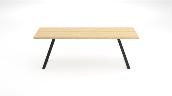 Het blad is gemaakt uit rustiek eiken, dus met meer noesten, van 4 cm dik massief Europees eiken. De rand is zwart gemaakt en ook afgerond op de hoekpunten. De behandeling is in 2 systemen – olie +lak – en kan in meerdere kleuren worden afgewerkt. Naast een mooie uitstraling, zorgt deze behandeling ervoor dat je tafel optimaal is beschermd tegen kringen en vlekken.