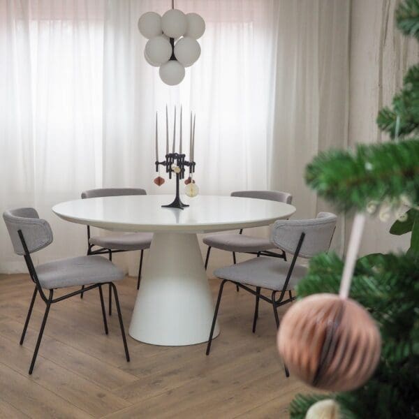 Je hebt waarschijnlijk al een beeld over waar de tafel moet komen te staan. Mocht je daarover twijfelen, laat je dan informeren of adviseren door ons. Onze handige 2D- en 3D-visualisaties vergemakkelijken dit proces, omdat je uitstekend kunt inschatten of de positie, plek en met name de grootte goed is. Wat de positie en ruimte van de tafel betreft is het prettig om ongeveer een meter ruimte te hebben om de tafel heen. Houd hiermee rekening met voldoende doorloopruimte en stoelen die makkelijk en ver genoeg naar achteren geschoven kunnen worden. Twijfel je over de grootte? Dan is een uitschuifbare tafel of het plaatsen van een bankje in plaats van stoelen een optie.