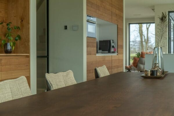 Dit hangt van verschillende factoren af, zoals de inrichtingsstijl, smaak, kwaliteit en prijs. De meest voorkomende materialen zijn hout, metaal en glas óf een combinatie hiervan. Massieve platen zijn zeer populair als tafelblad, mede dankzij de duurzame eigenschappen en het fraaie, natuurlijke uiterlijk. Ook multiplex, medium-density fibreboard (MDF) en betontriplex zijn geschikt als tafelblad. Deze houtsoorten zijn opgebouwd uit meerdere dunne lagen en hebben een milde reactie op verschillen in luchtvochtigheid. Goed om te weten dat wij multiplex en MDF met een speciale coating in effen kleuren (mat, zijdeglas en hoogglans) kunnen spuiten, waardoor de tafel meer belasting aan kan.