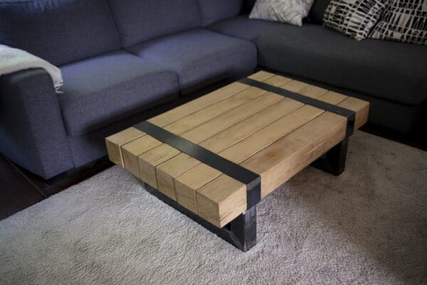 Als een strik houdt het stalen onderstel de grove balken van deze salontafel Robusto bij elkaar. Een sterke jongen is het hoor, deze salontafel. Hij past vanwege de robuuste look dan ook uitstekend in een wat stoerder interieur. Te verkrijgen in iedere gewenste maat, kleur, houtsoort en afwerking.
