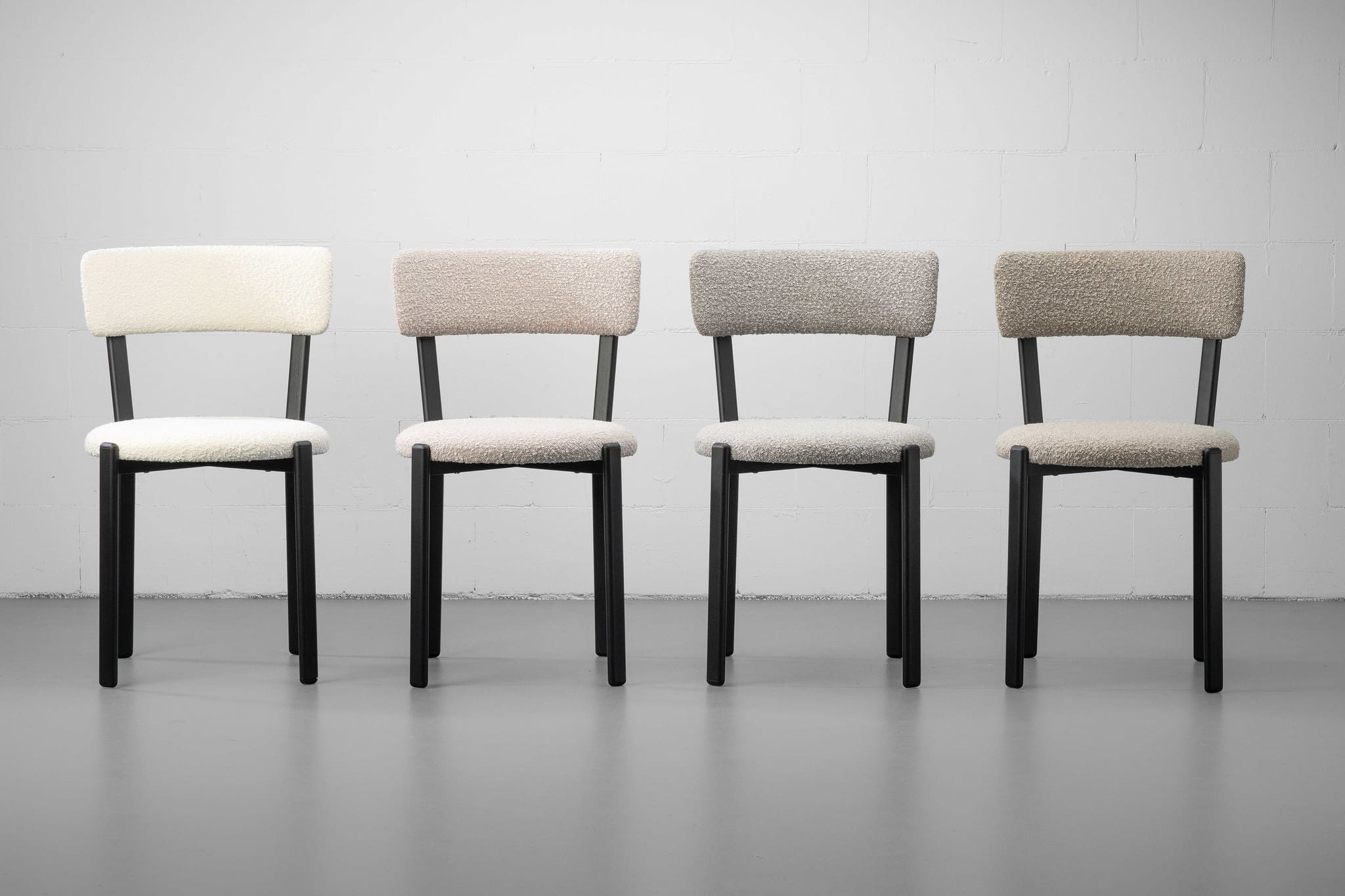 De Obu eetkamerstoel heeft een ogenschijnlijk simpel uiterlijk maar verrast in opvallende details en zitcomfort. Zo is de bekleding een bescheiden boucle in vier net zo bescheiden kleuren die heel goed onderling gemixt kunnen worden.