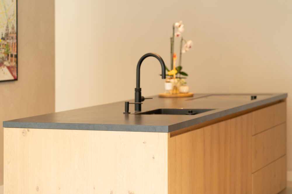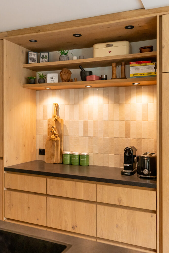 Doordat we alles zelf ontwerpen en maken klopt elk detail: de greeplijst, de ritmiek van de fronten, de doorlopende nerf en de aansluiting op de vloer en muren. Het resultaat is een keuken met rust, balans en een langdurige afwerking.
